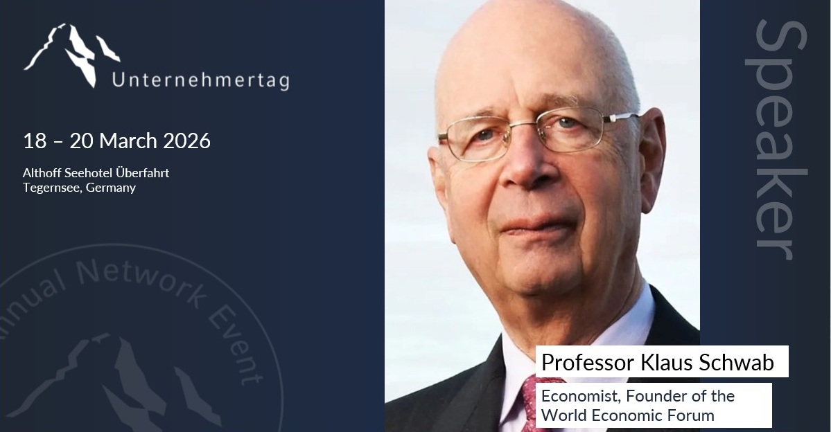 We are delighted to announce that Professor Klaus Schwab, the founder of the World Economic Forum, will join us for an exclusive fireside chat at the Unternehmertag at Lake Tegernsee.
